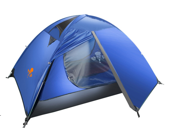 two person double-couche tent002; Color: blue, orange,yellow light green